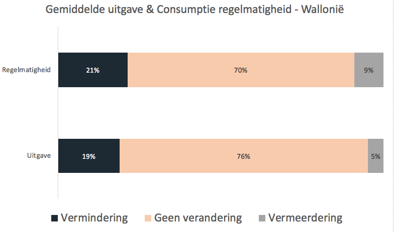 77% van de Waalse burgers die plannen minder uit te geven per uitstap zegt dat ze ook minder vaak op restaurant zullen gaan. Slechts 3% hiervan zegt regelmatiger uit eten te gaan.